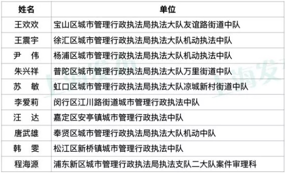上海城管“双十佳”公布 ( 2019-12-02 )